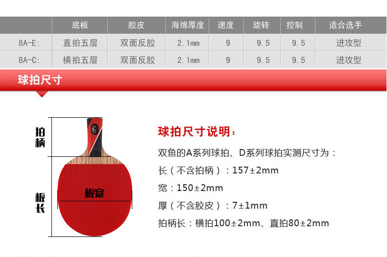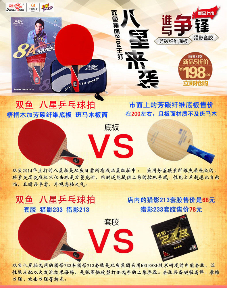 双鱼三星乒乓球拍1只单拍直拍横拍兵兵球拍3A学生乓乒球拍初学者