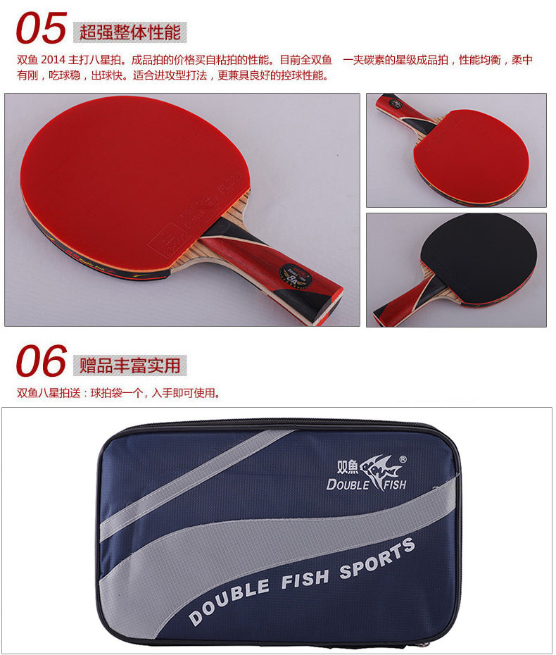 乒乓球拍双鱼单拍1只玄冰3701乒兵球拍送拍袋初学者进攻型学生