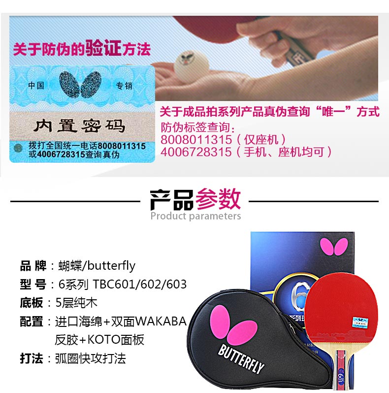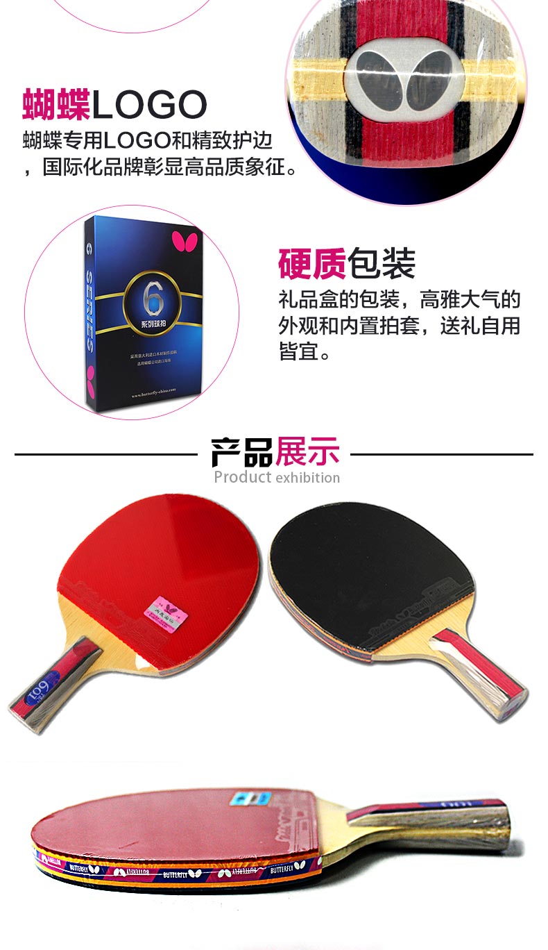 官网正品蝴蝶6星乒乓球拍butterfly乒乓球横拍ppq六星成品拍反胶