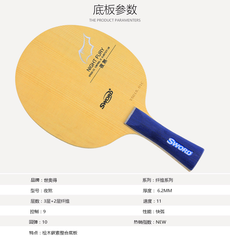 Sword世奥得乒乓底板纤维系列夜煞球拍底板横拍直拍