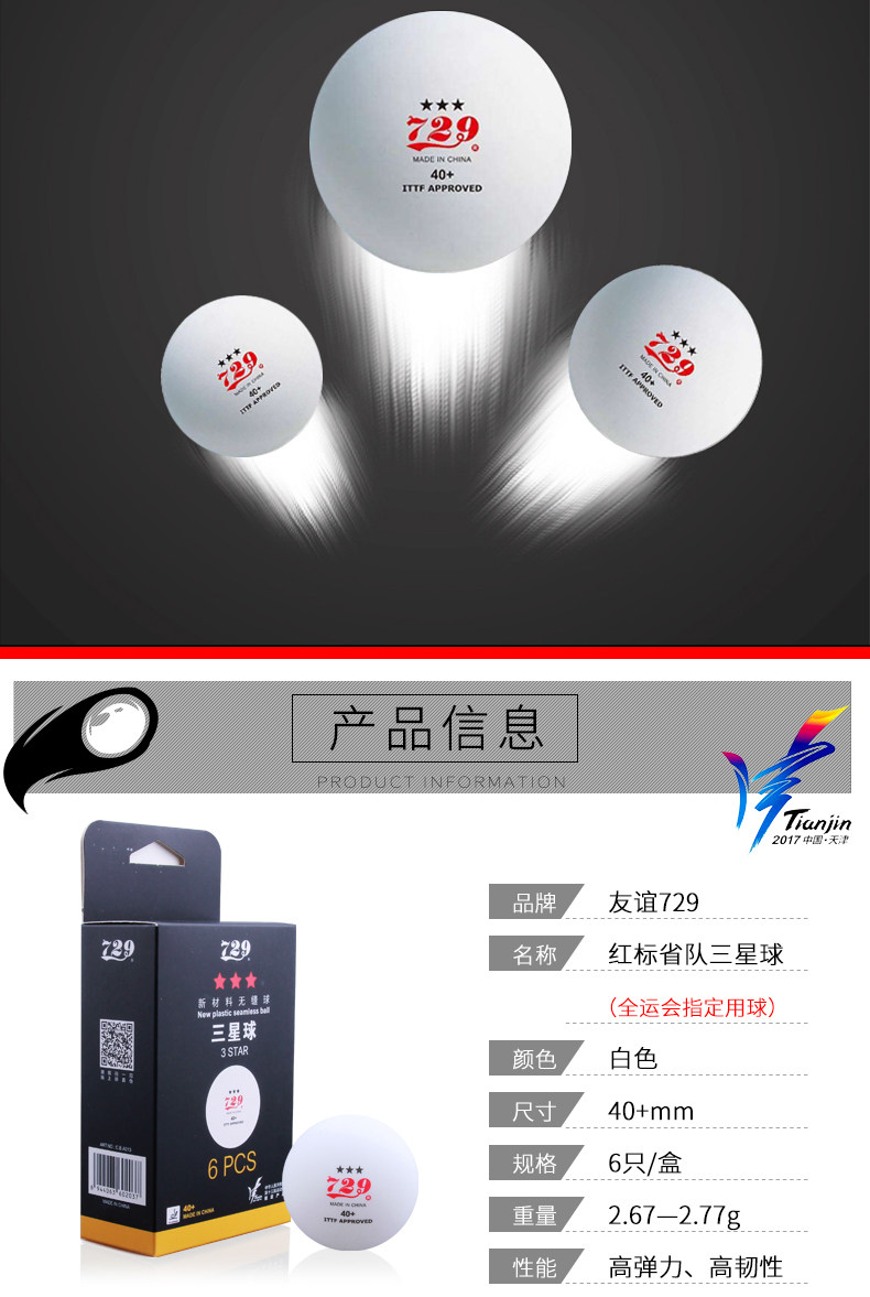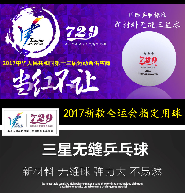 桃林生活网 > 运动户外 > 乒乓球用品 > 乒乓球 > 729乒乓球三星级省队全运会训练比赛用兵乓球无缝球新材料3星40+