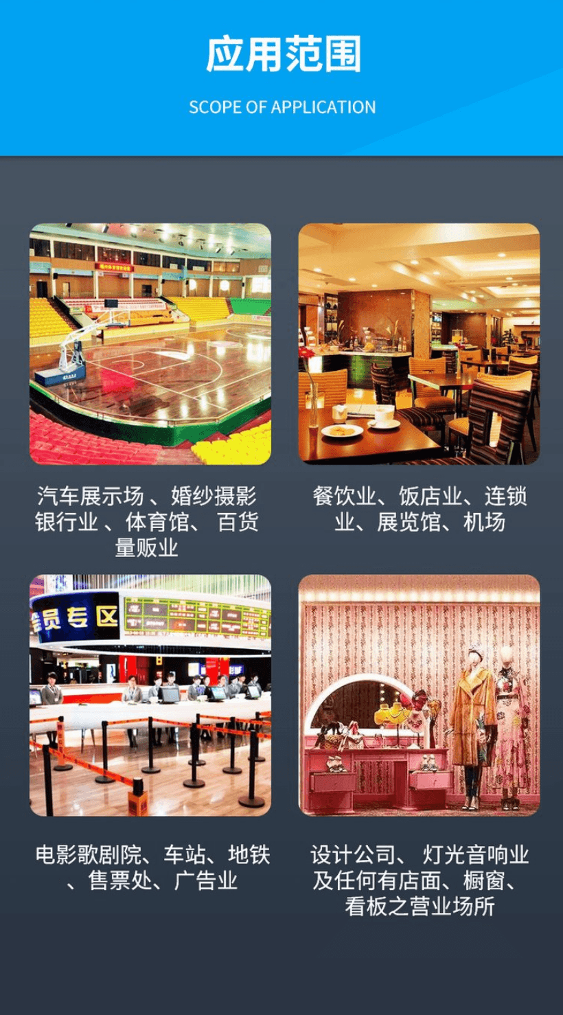 2:全息深灰/浅灰/乳白/纯白/镜面膜为不透明膜,类似磨砂玻璃的原理用于橱窗展示区贴于透明玻璃上。光线影响较小时,投影效果会更佳。